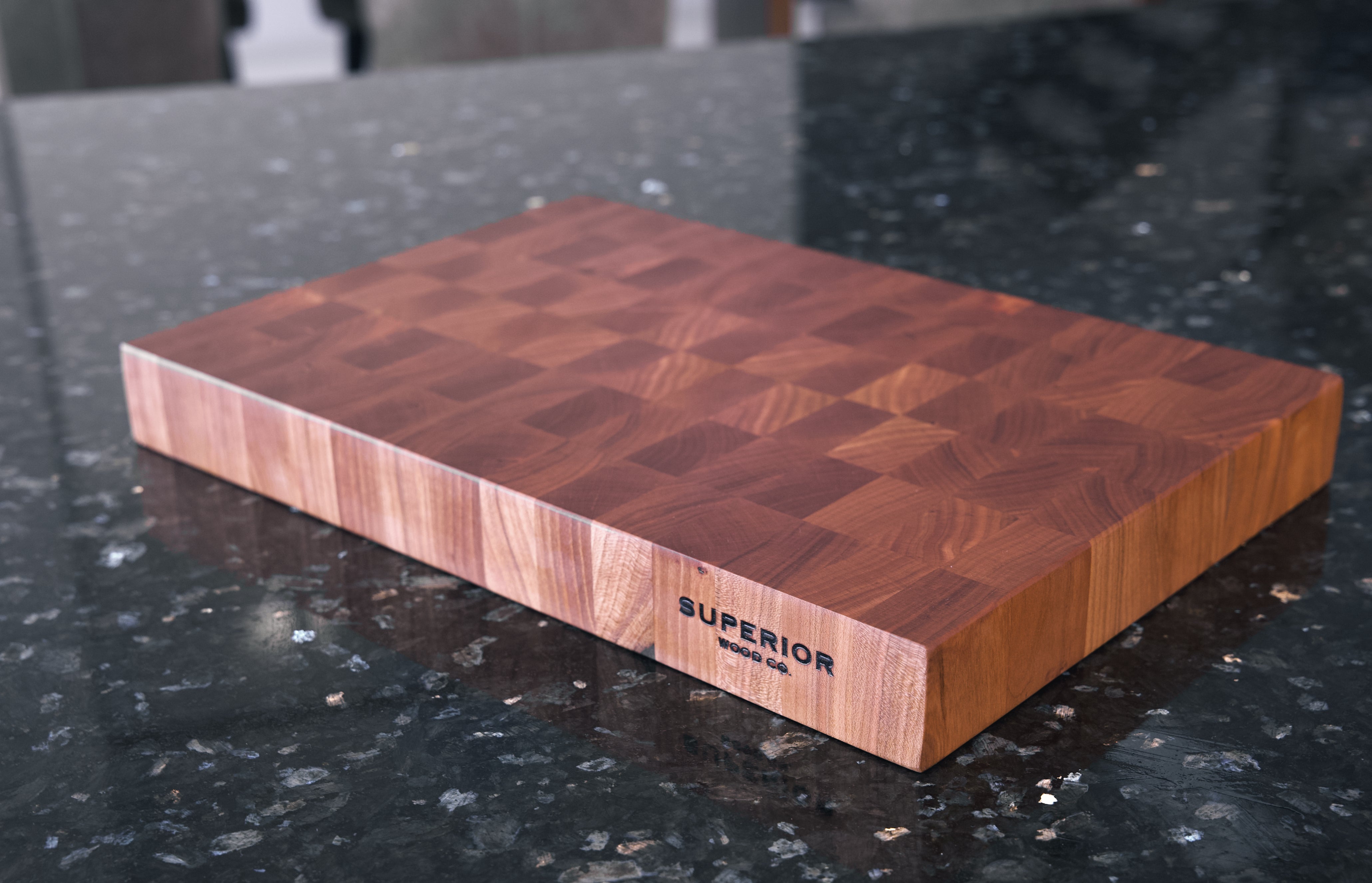 A stunning hardwood with rich, smooth red tones, cherry end grain cutting boards radiate with vibrant color.